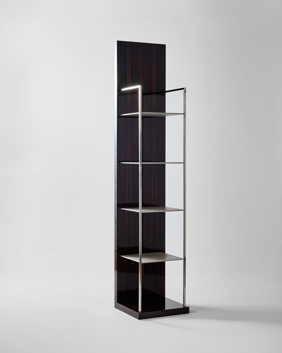 45x45cm H=220cm Ébano de macassar brilhante e prateleiras em aço inox.